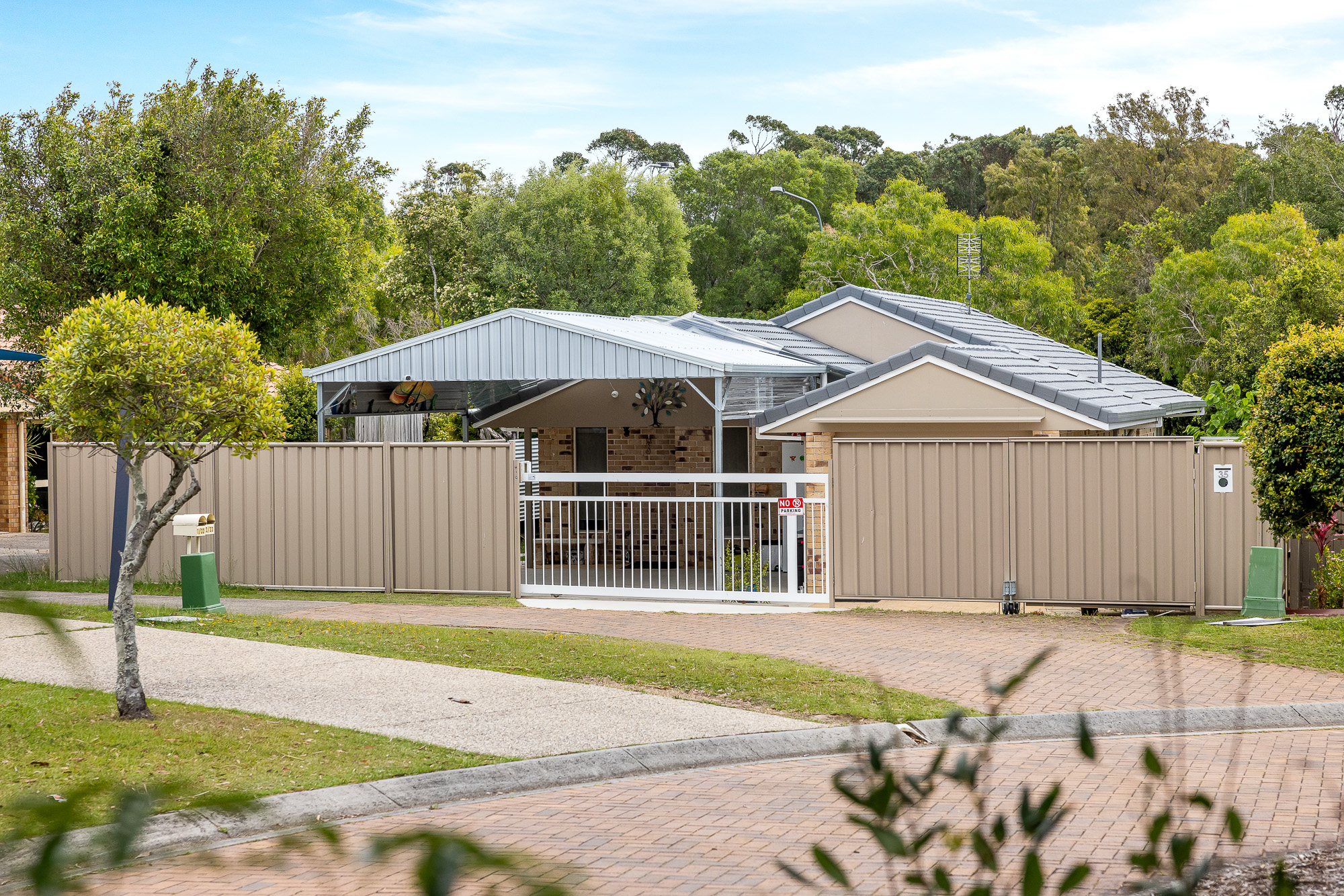 There is an electronic gate entry with double gates providing side access all the way down the side of the home to the back of the property.